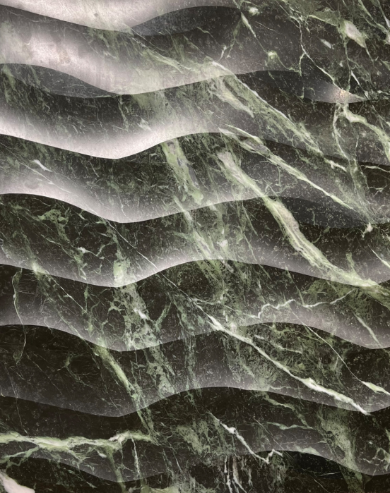 Lithos Design為其大理石裝飾板帶來紋理,從樹葉到漩渦再到蜂窩。其Lembo設計(此處為綠色巴西大理石款)的靈感源自漣漪的水波。