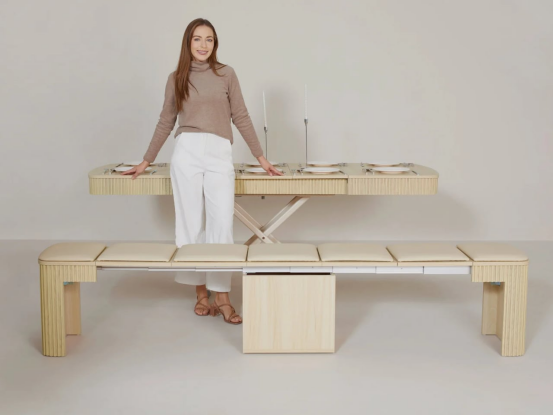 他們方法中引人注目的一點是,拒絕將"小空間家具"視為一個限制性類別。這些產品并非傳統家具的迷你化版本,也不是為了緊湊性而犧牲品質的折疊妥協方案。相反,Expand Furniture 將"變形"作為首要的設計挑戰,創造出在多種形態下都能保持完整功能,同時將機械復雜性隱藏在簡潔美觀外觀之后的家具。
