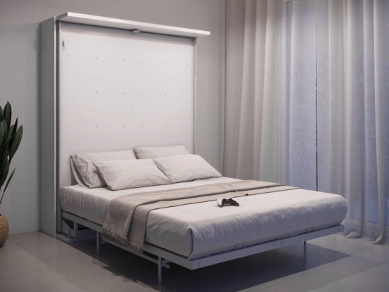 其機械結構代表了隱藏在簡單操作背后的精密工程。隱藏的活塞和不可見的硬件將機械部件置于視線之外。床面在打開時充當浮動支撐基座,一體的焊接鋼制床架和板條系統可支撐任何厚度達11英寸的大號床墊。折疊時的懸浮支腿設計和簡潔側面輪廓,營造出一種開放、自由的美感,而非傳統墨菲床的封閉柜體外觀。