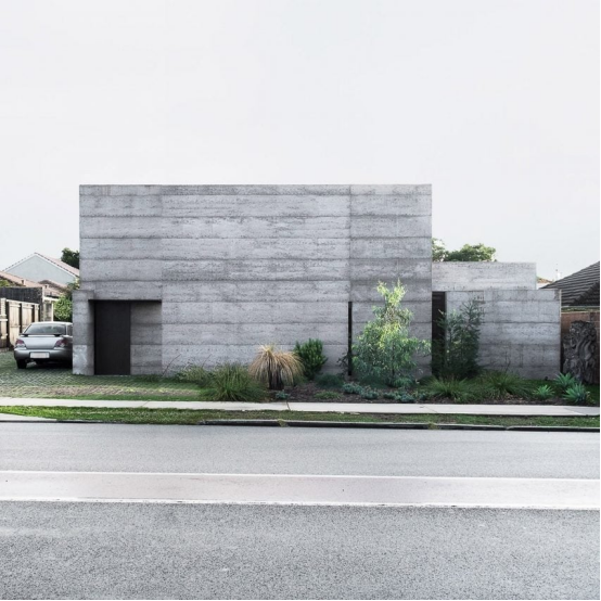 這座名為"回廊住宅"的建筑,其無窗的夯混凝土外立面將內部空間與繁忙的道路隔開,并有助于抵御強風和烈日。