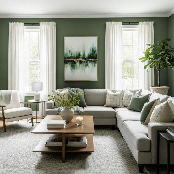 將其與奶油白、骨色或灰白色搭配,營造更柔和的外觀,或者用暖調的黑青銅色或深橄欖色增添對比。天然材料和紋理——胡桃木或橡木、皮革、布藝、天鵝絨和亞麻——能放大其濃郁感。