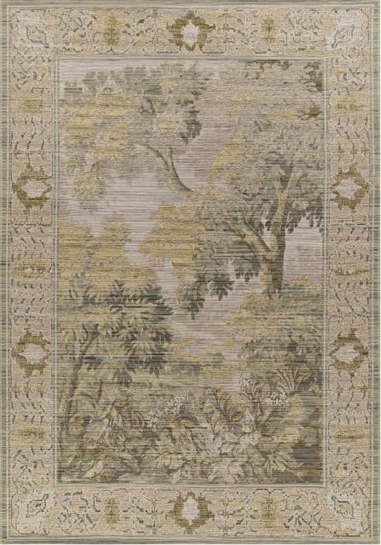 回溯一兩個世紀,類似掛毯的圖案(在去年秋季展上已初露端倪)在本季各類軟裝飾表面中更加流行。Momeni全新的羊毛混紡棉Barron系列中的幾款地毯——例如這款中性色的——仿佛是從16世紀城堡的墻壁上取下來的。