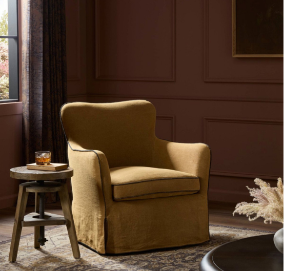 外露縫線、裝飾性鑲邊、流蘇、粗獷的滾邊及其他細節處理在展會上占據了重要位置,它們不再是額外的裝飾,而是成為家具設計不可或缺的一部分。這款Four Hands的Devon活動套罩轉椅上的對比色縫線強調了椅子的線條,是對該趨勢一種舒適、隨性的詮釋。