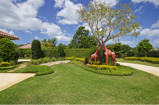 Gold 建議融入您最喜愛的顏色,以及能讓您會心一笑的耐候戶外藝術品。在這個邁阿密的景觀中,色彩鮮艷的長頸鹿雕塑仿佛正在啃食樹葉,帶來了驚喜和愉悅。