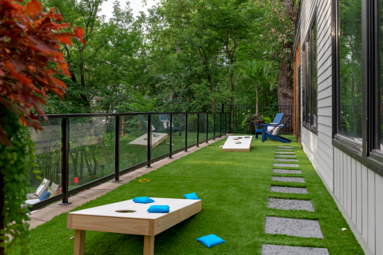 在明尼阿波利斯的這個陽臺上,Mom's Design Build 為玉米洞游戲創(chuàng)造了一個好去處。此外,幾張放置得當?shù)陌⒌趥愡_克椅提供了欣賞自然、閱讀書籍或觀看玩家比賽的位置。