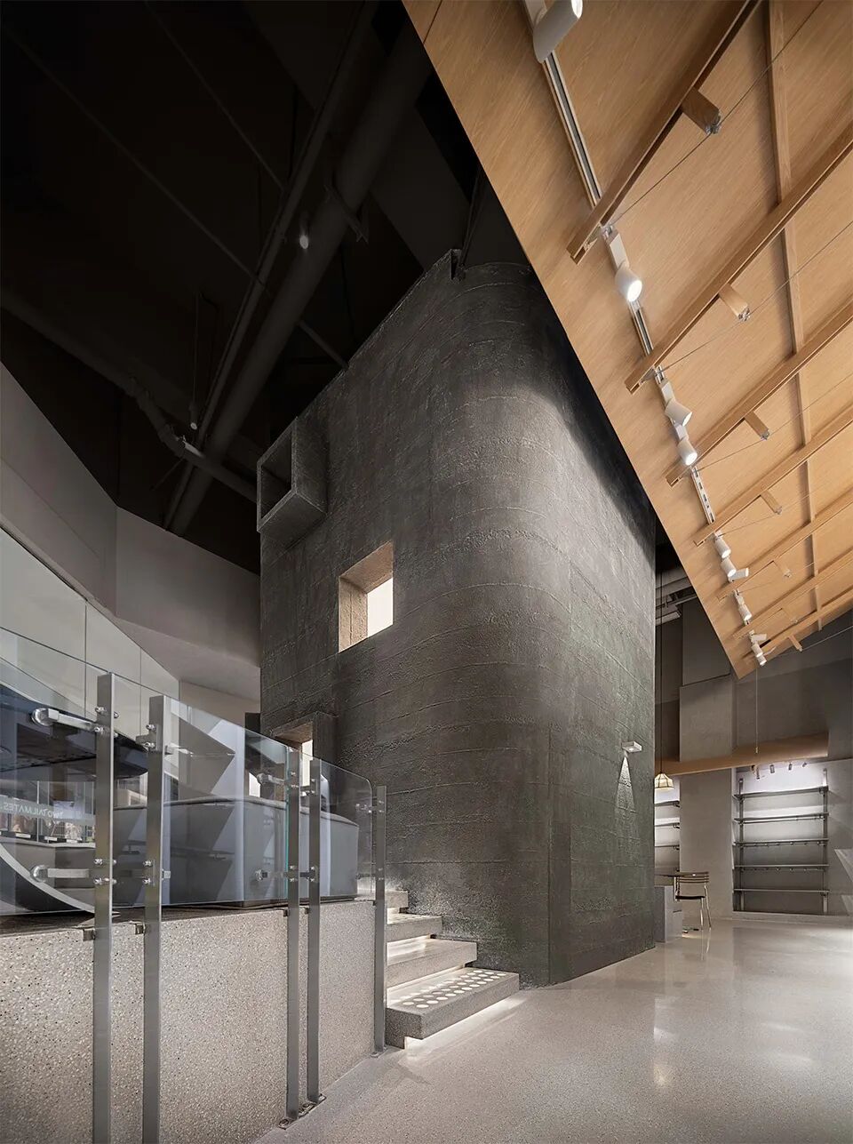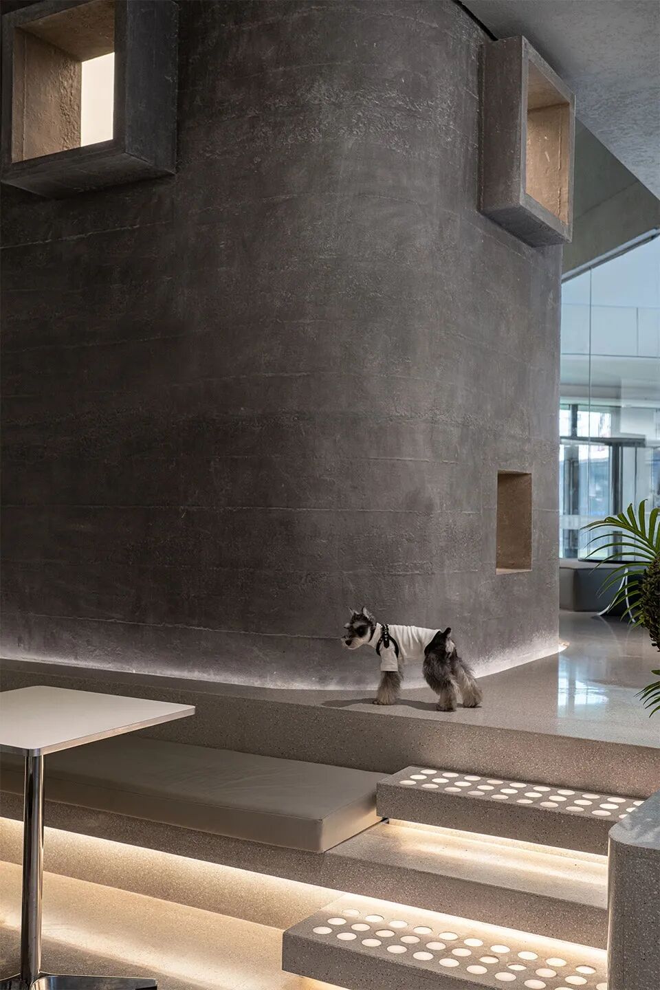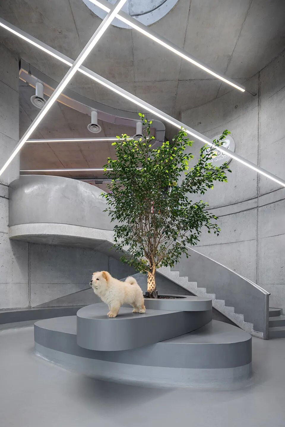 圍繞室內中心立柱,設計團隊建立起核心筒。筒內區域可供主人為愛犬舉辦派對,或是為門店部分經營活動提供私密場地。