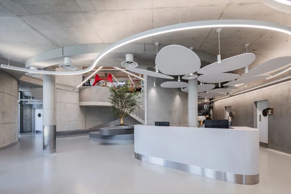 柔和有機的形式與野性粗獷的混凝土之間的對比,不僅帶來了實用性,也賦予建筑更深的美學層次。露臺與花園并非裝飾性的存在,它們作為治療性空間為“病患”提供光照、空氣與自然的聯系。