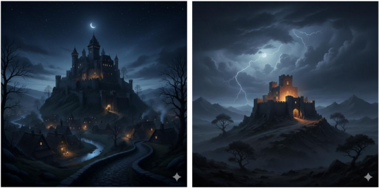例如,與其寫"夜晚山上的城堡",不如嘗試"暴風雨夜空下,遠處山丘上一座孤寂的堡壘在發光"。AI會將語氣和氛圍解讀為視覺線索。