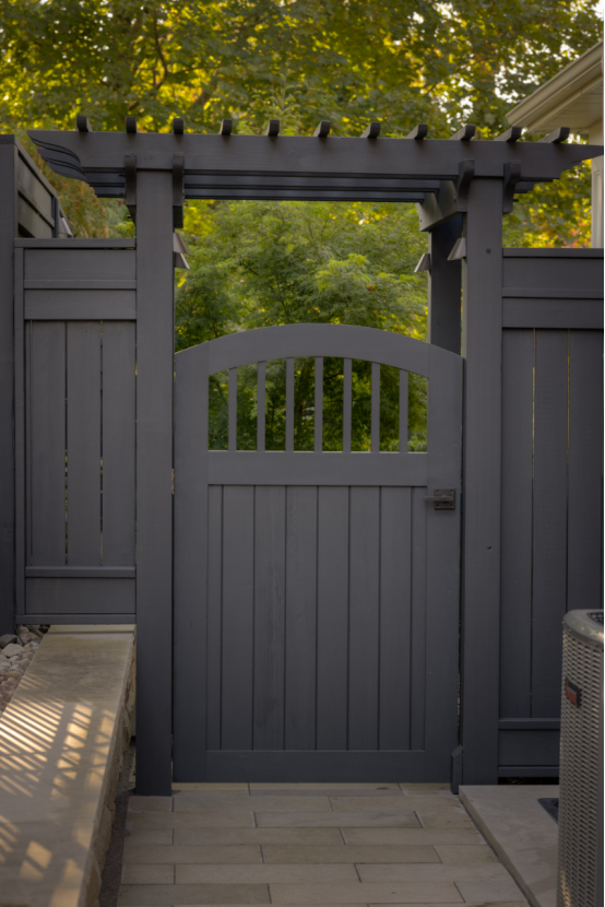 翻新圍欄。?新圍欄可能很昂貴。Hayman 說,如果您的圍欄結構仍然完好但看起來陳舊或過時,您可以添加新的細節以及一層新的染色劑或油漆。"深炭色能使植物更加突出,"她說。她補充道,將不同風格的圍欄粉刷成相同的顏色也能創造統一的外觀。