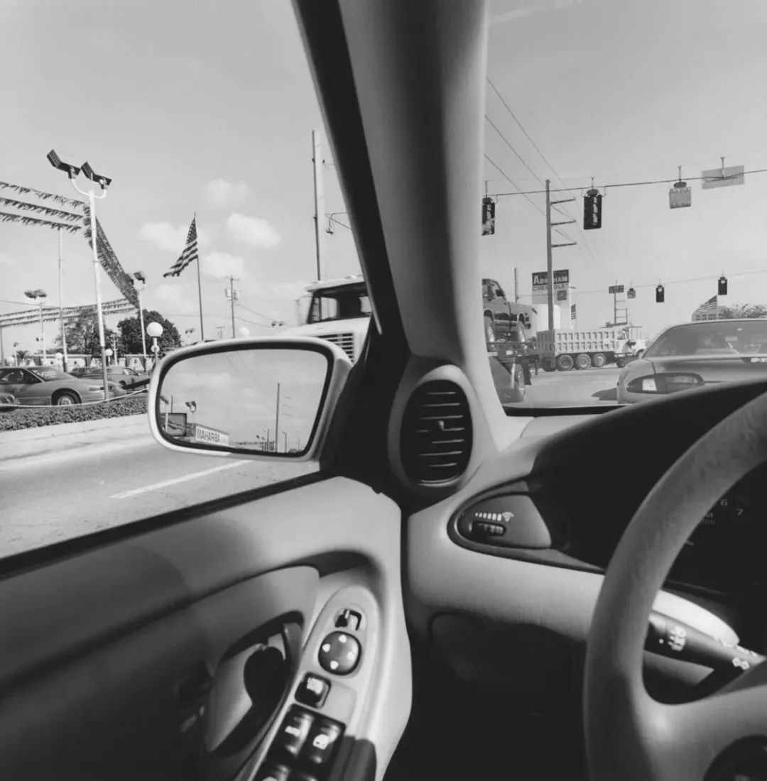 李·弗里德蘭德別出心裁地用車窗、倒車鏡當(dāng)框架將景物“規(guī)整”起來(lái)。