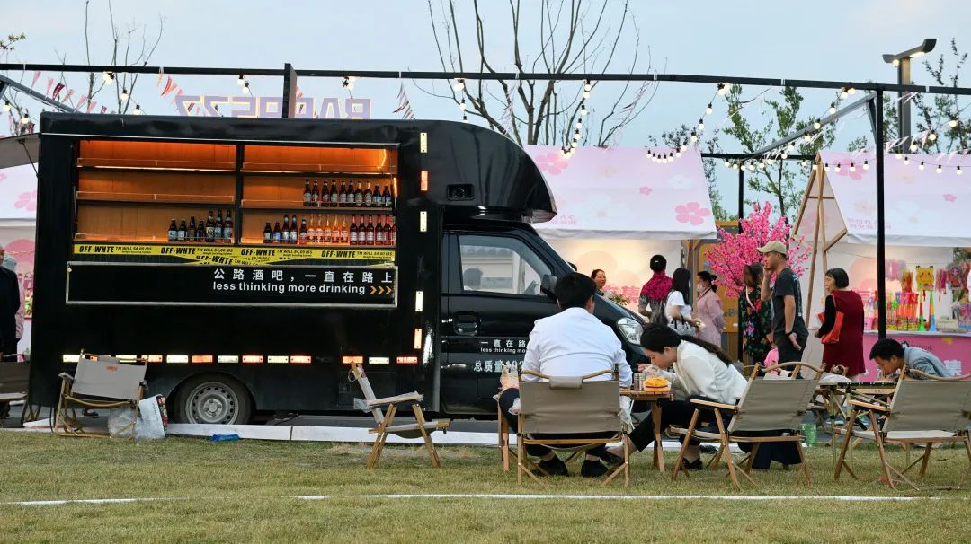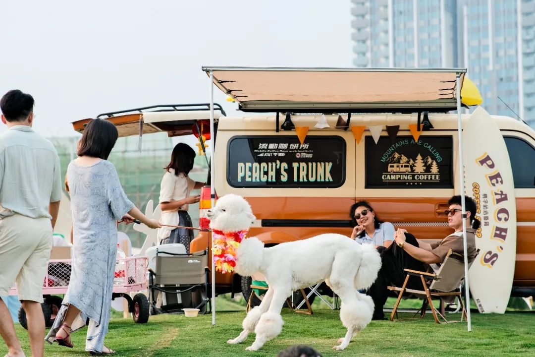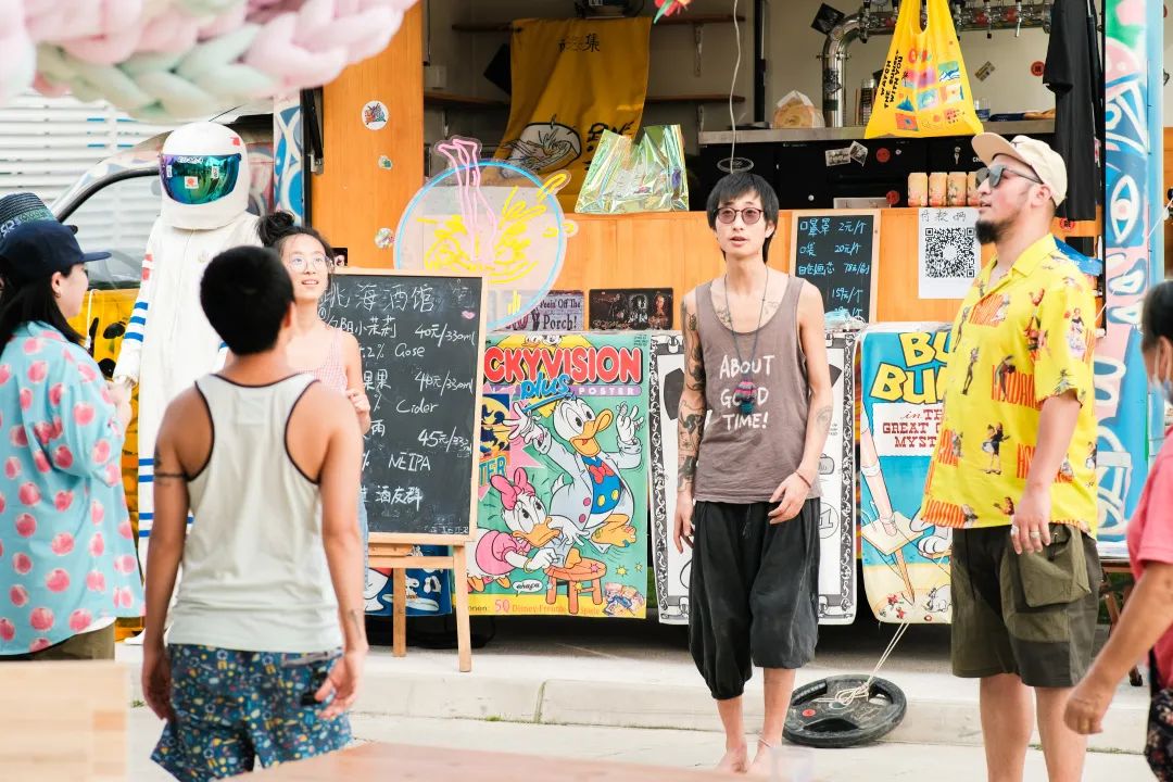 也怪那些開著車出來賣酒、賣咖啡、賣衣服、賣熱狗、賣漢堡的,總把車搞得特好看,加上桌椅板凳一支棱,chill音樂一放,一群人在那兒歡笑,很難不被吸引。
