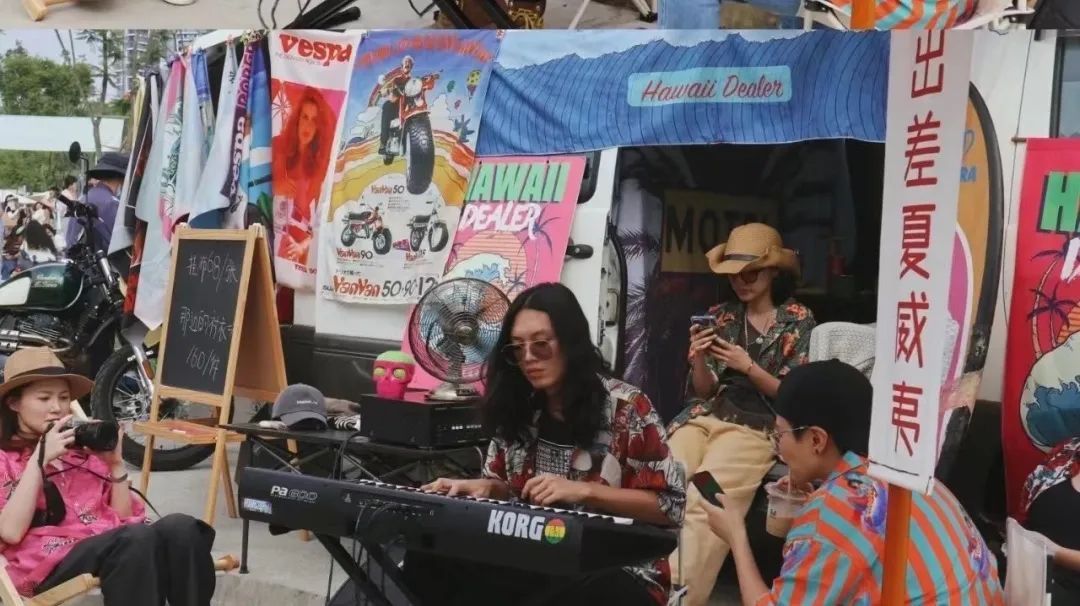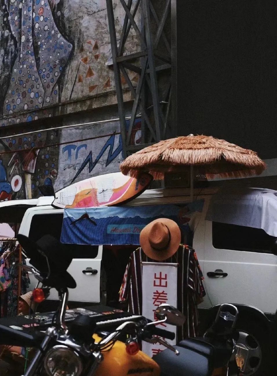 前兩周,九和三三這對夫妻檔剛去東郊記憶的NEED!FLEA市集擺攤,入口處偌大一片地盤,圍繞這輛奔馳MB100,被打造成了海南海灘。