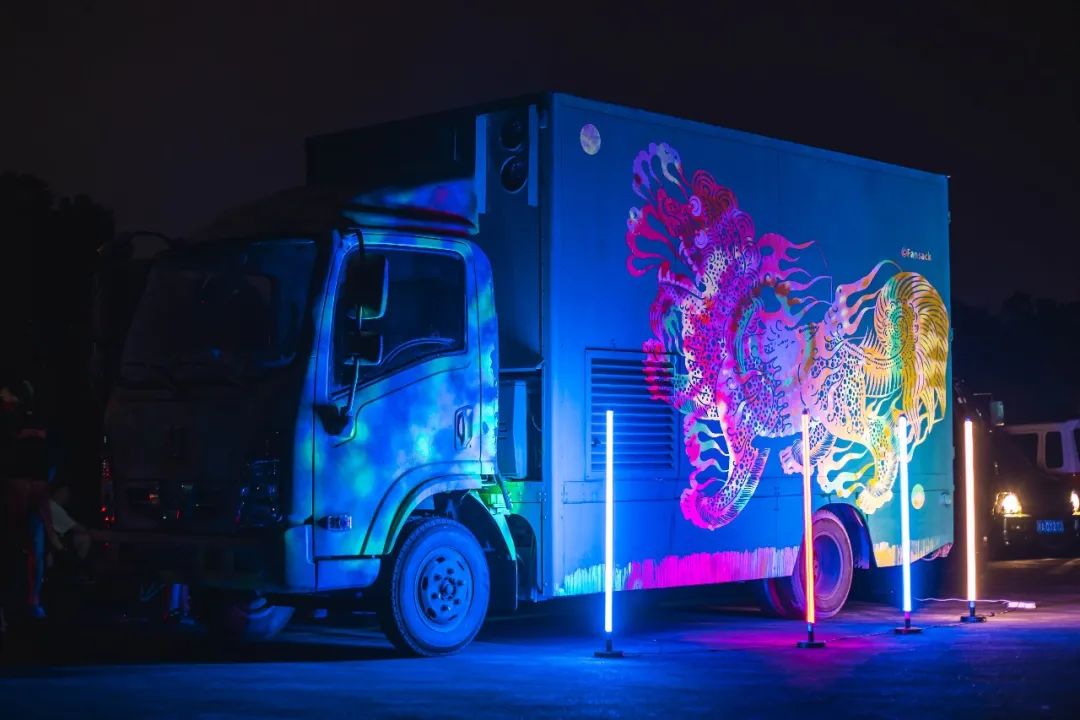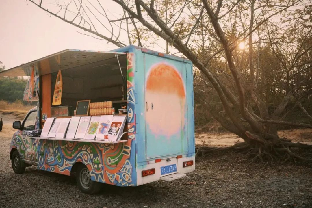這輛車改裝自福田的一輛流動售貨車,KoKo和朋友直接去湖北的廠里買了輛新的,一路開回重慶,讓川美一幫玩涂鴉的朋友迅速把它改造了。