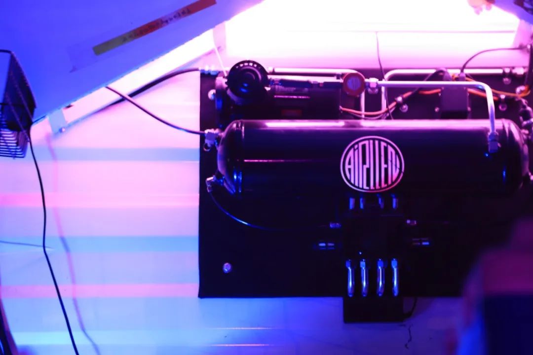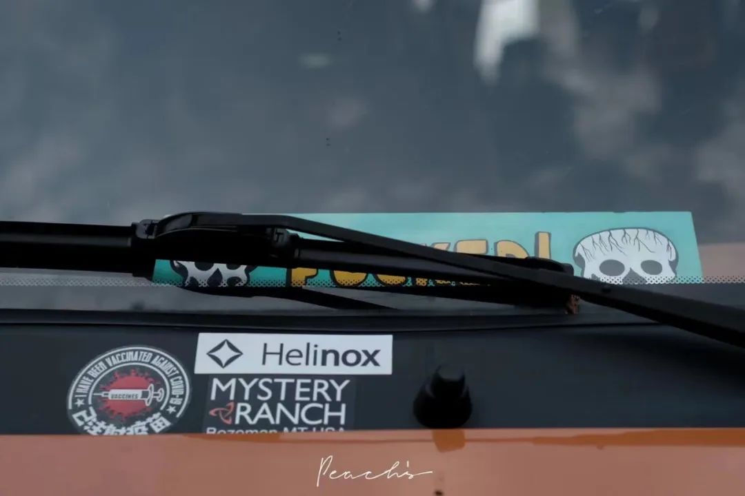 車的后面,KoKo噴了一個漸變的落日,因為他每年都要在重慶做個叫“落日出逃”的活動,但重慶總沒太陽,他干脆把太陽掛在車上了。