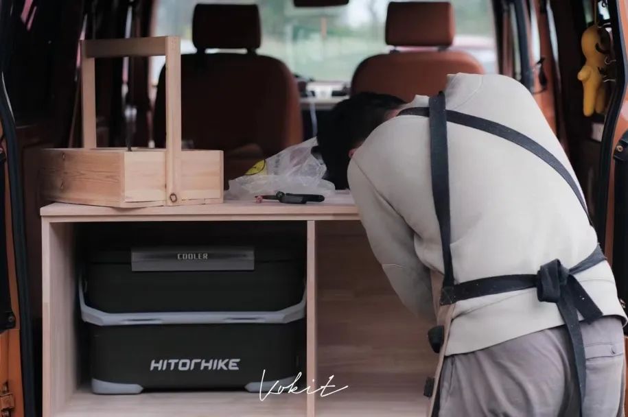 貓叔對改車這個事兒真的很認真。他甚至想到桃子的后備箱的兩面得有不同的涂裝,一面咖啡元素更多,一面露營元素更多,以匹配不同的場景。