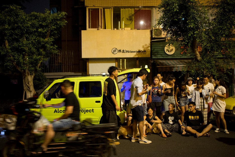 有時候他還沒開到玉林,十幾個酒客就在老地方幫他占車位。有時候冰塊或者杯子用完了,他想趁機收攤,酒客們就立刻自發跑去便利店買,不讓他撤。