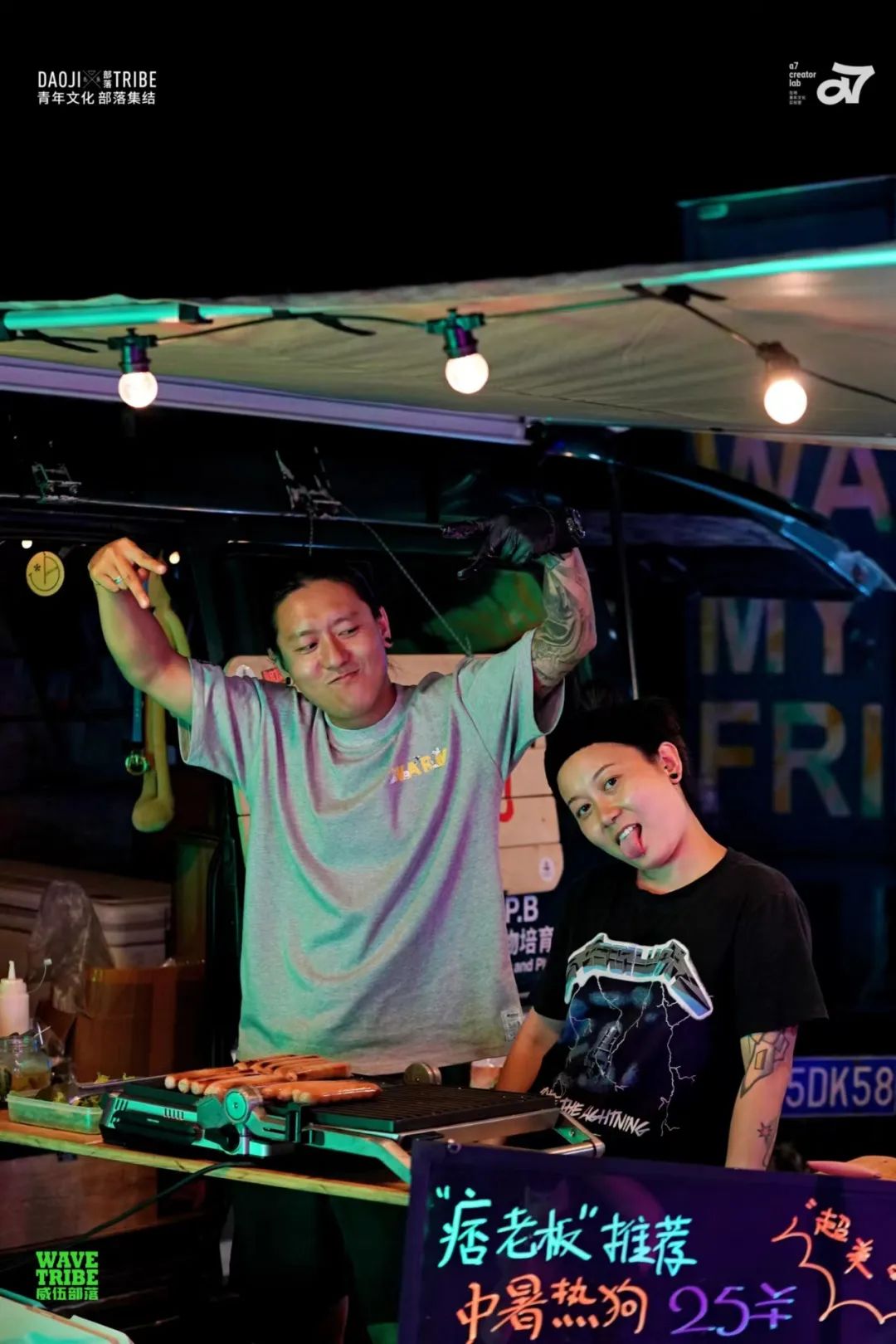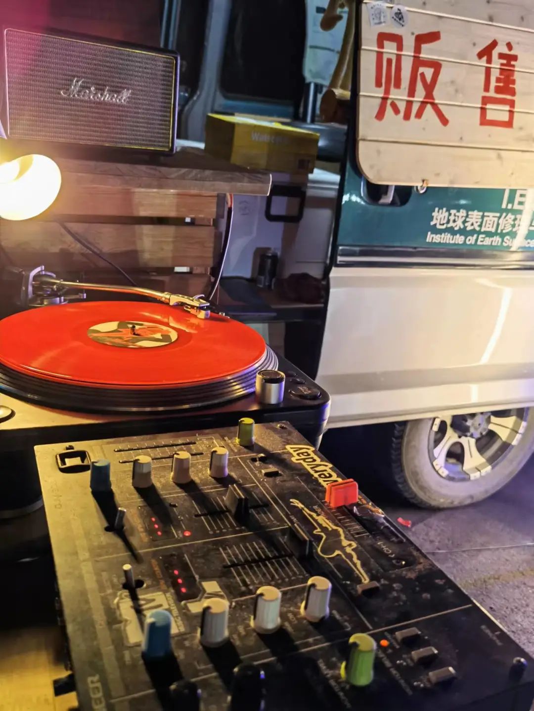 后備箱門一開,幾張露營椅馬路牙子上一擺,Marshall音箱的音樂一放,再掛上兩條橫幅,一條“Take it easy”,一條“街頭低聲派對 你吵鬧 他投訴 我失業”,Kevin就算是開“箱”營業了。
