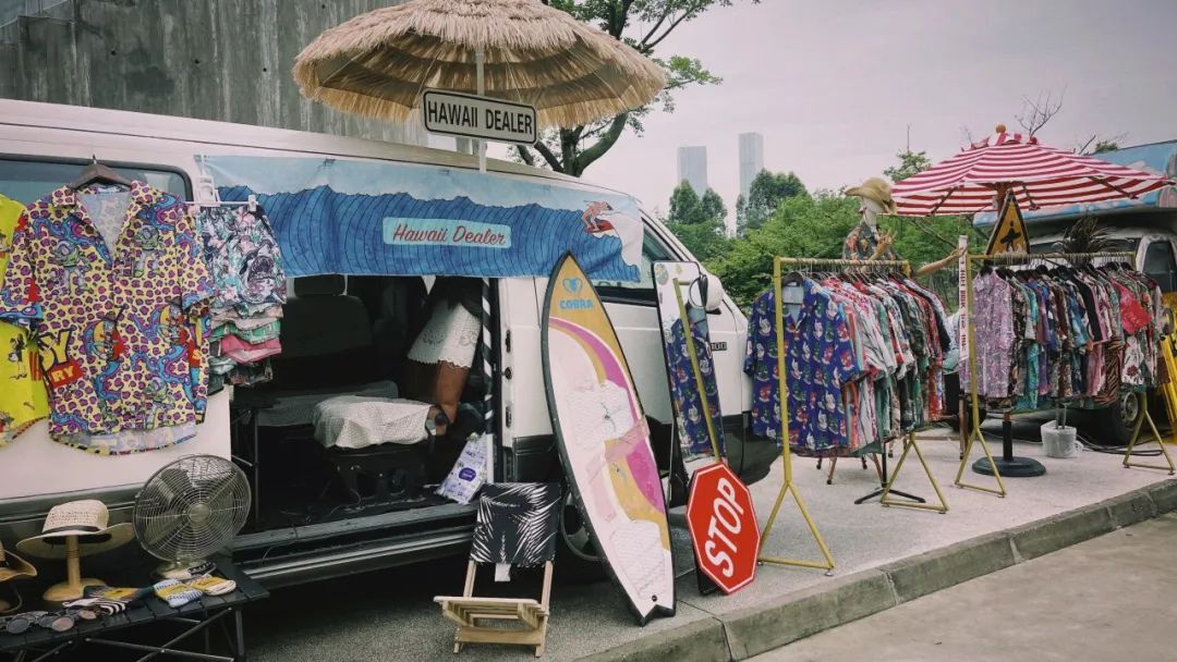 出差夏威夷,超級顧名思義了。這是一輛專賣花襯衫的車。
