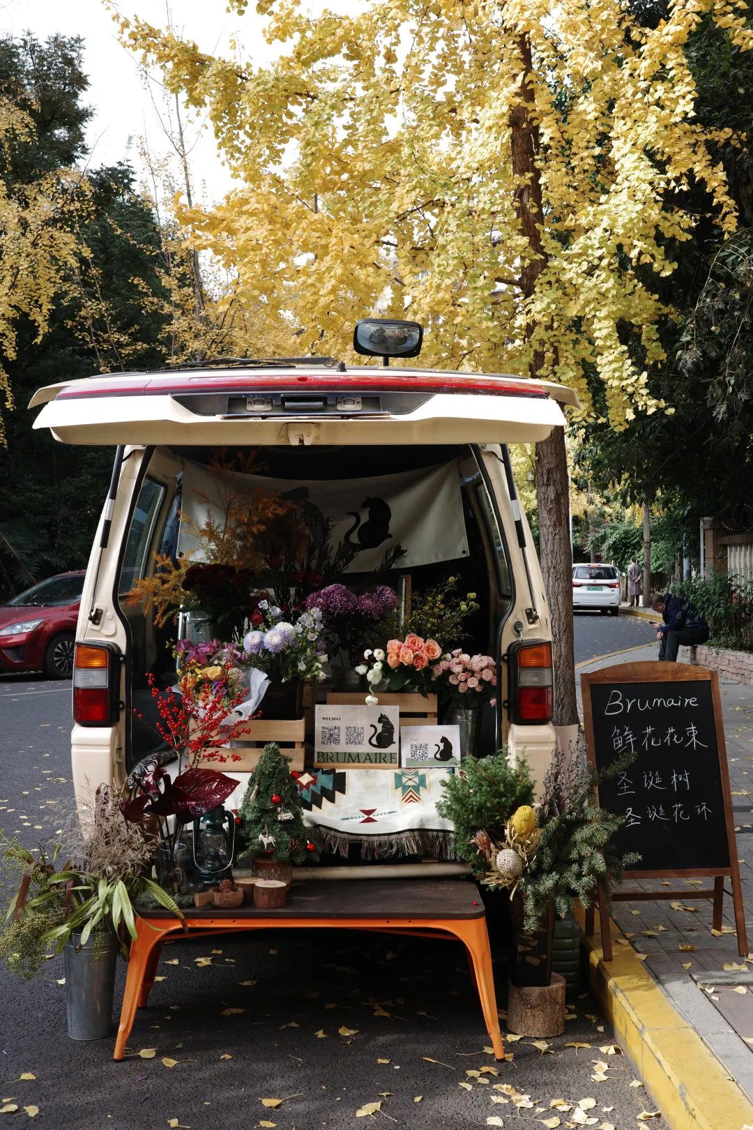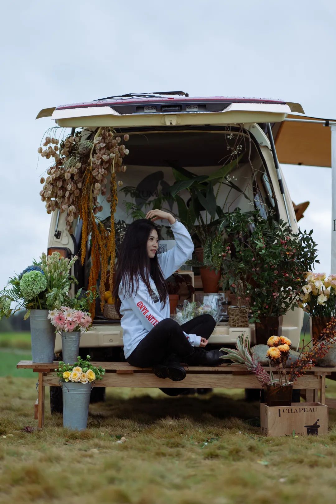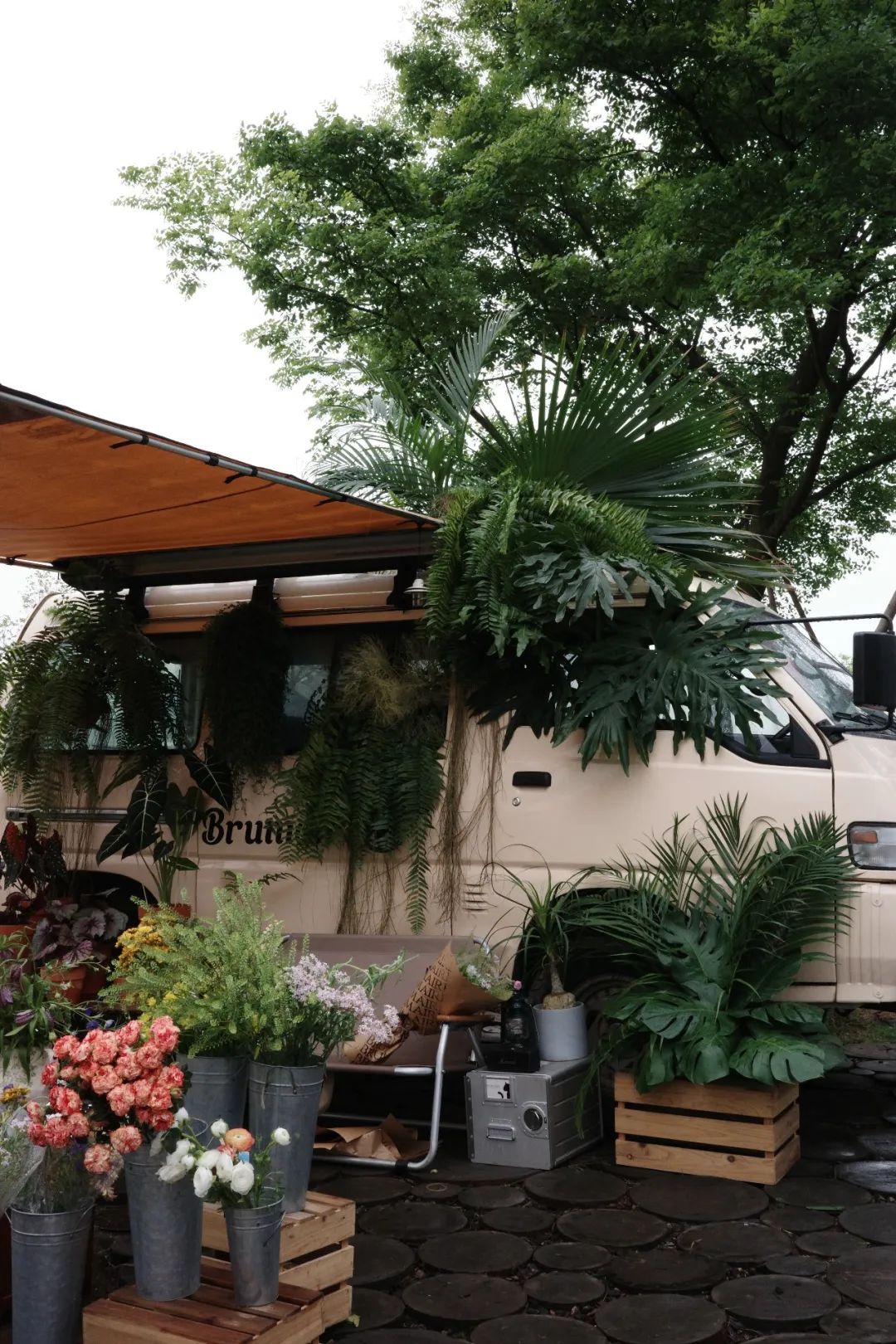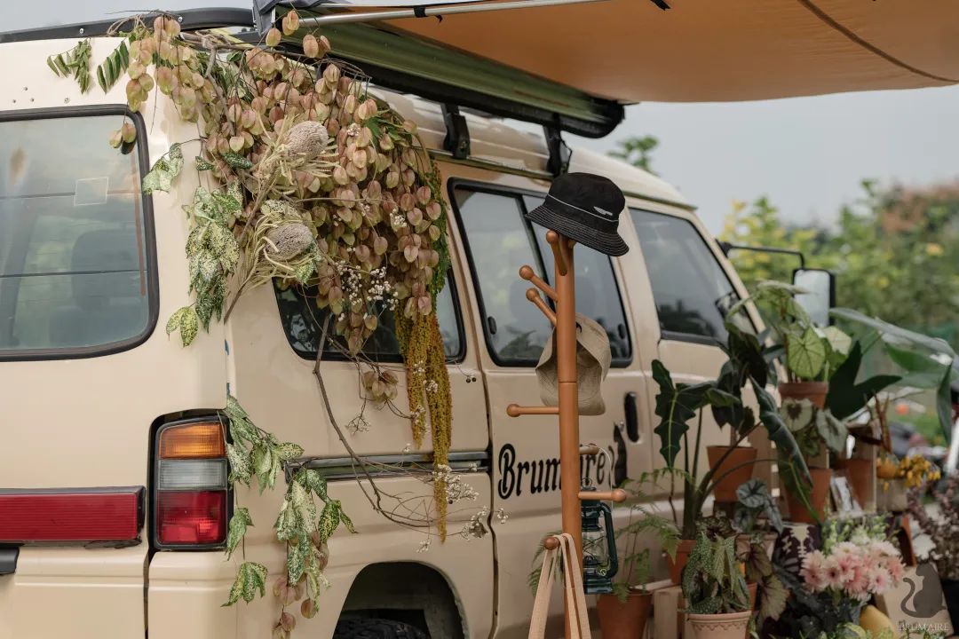 這輛奶白色的得利卡出現在任何一個市集,必定都是拍照打卡點。霧月與你腦中所想的那種,擺著很多小桶一支一支賣花的花車完全不同,它更像是一種車和植物、花卉結合的藝術裝置。