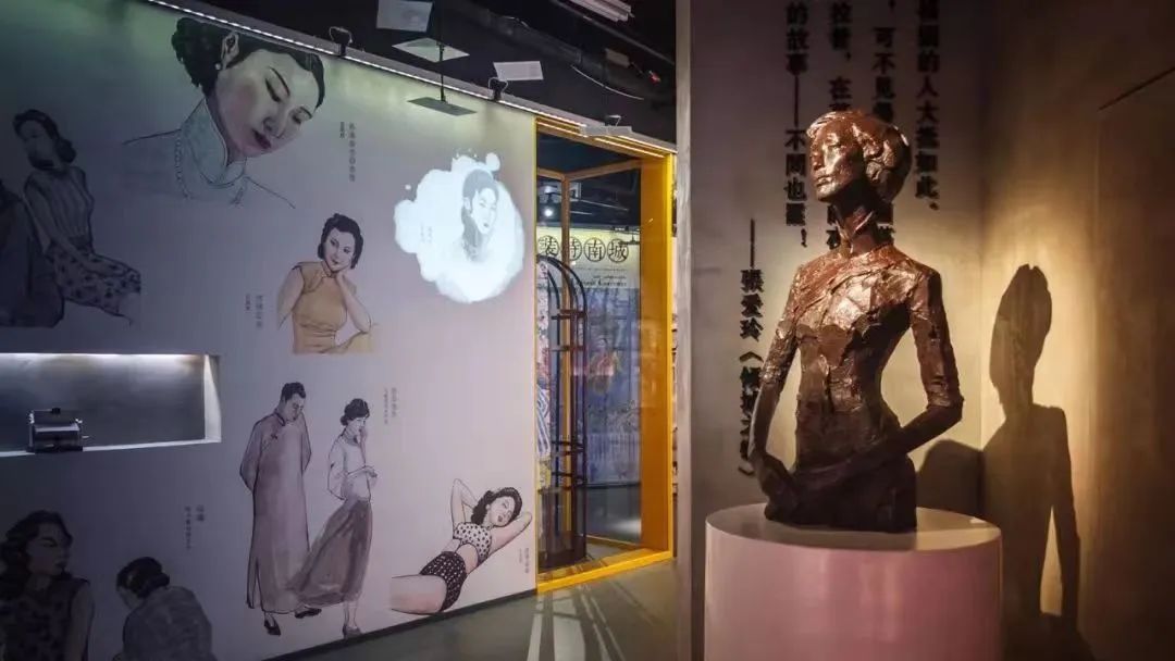 常設(shè)五個(gè)展區(qū),愛(ài)玲說(shuō)、名媛錄、喜福會(huì)、風(fēng)尚集、風(fēng)物志,撲面而來(lái)的,是風(fēng)云女子的傳奇故事、復(fù)古氣息的老舊物件、整面的明星海報(bào)、巨幕的短篇展映……