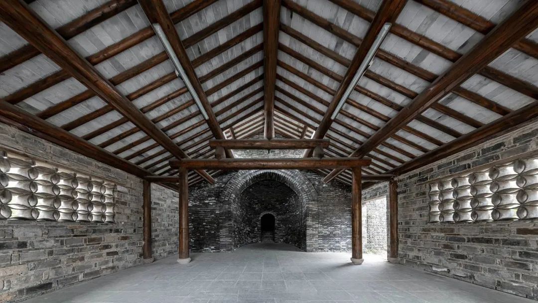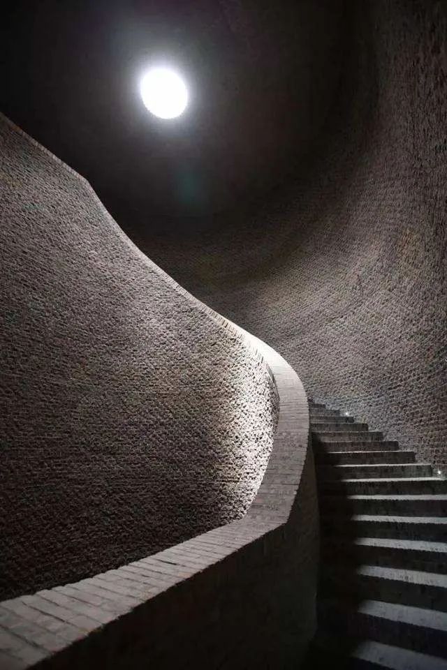 值得一提的是,這做建筑出自著名建筑師劉家琨之手。走進(jìn)序廳,腳下踩的都是貨真價(jià)實(shí)的金磚,四周黑白分明的墻面和磚砌的旋轉(zhuǎn)樓梯,一點(diǎn)也不愧對(duì)“建筑”的主題。