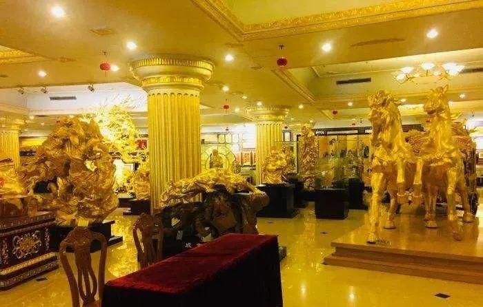 館內(nèi)金箔藝術(shù)品共有3000余件,包括金卡、金箔畫(huà)、金箔書(shū)、金字招牌、金磚金瓦等等。