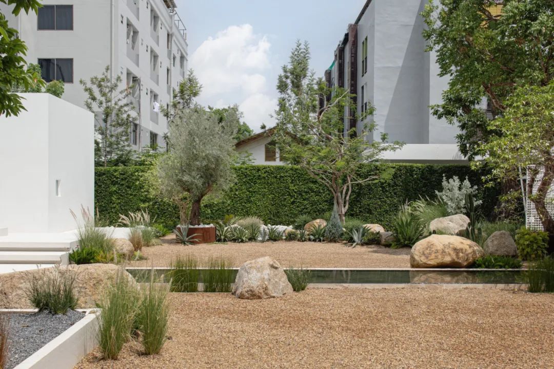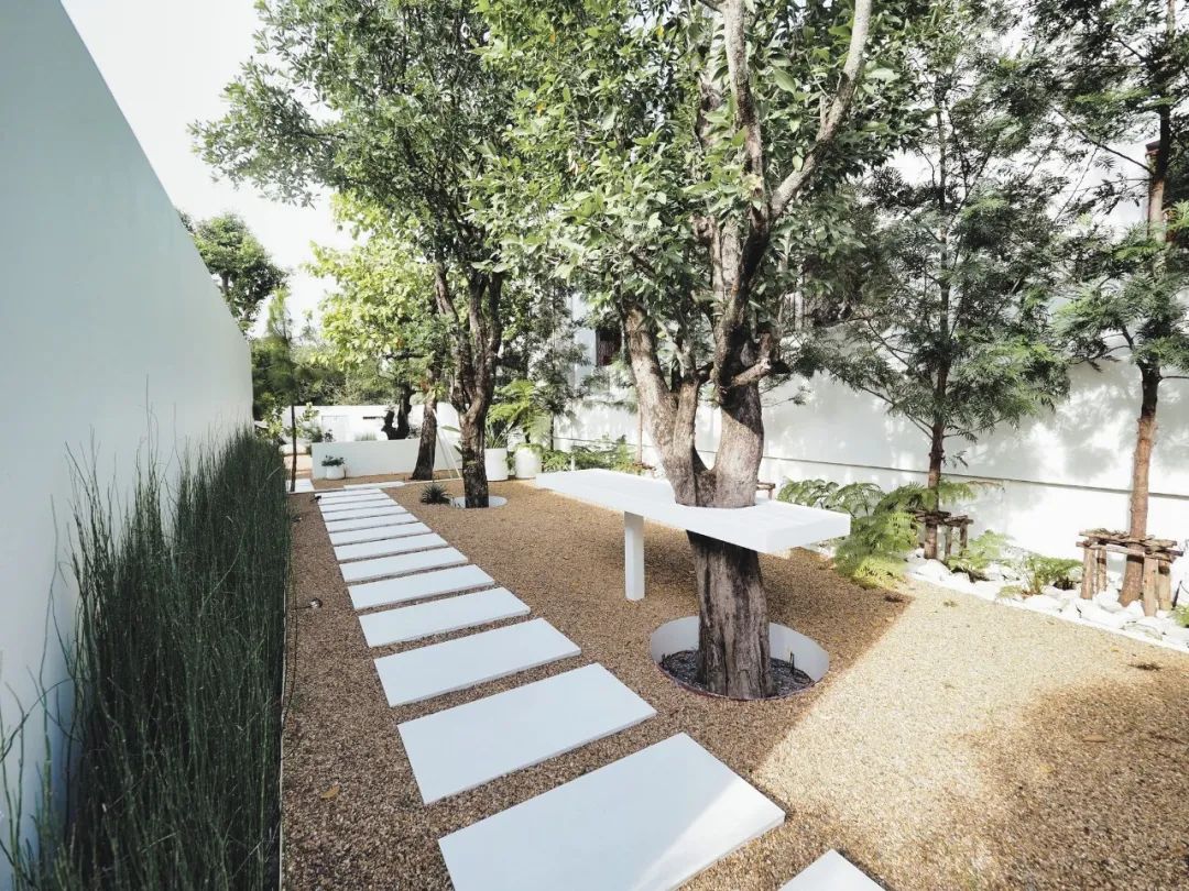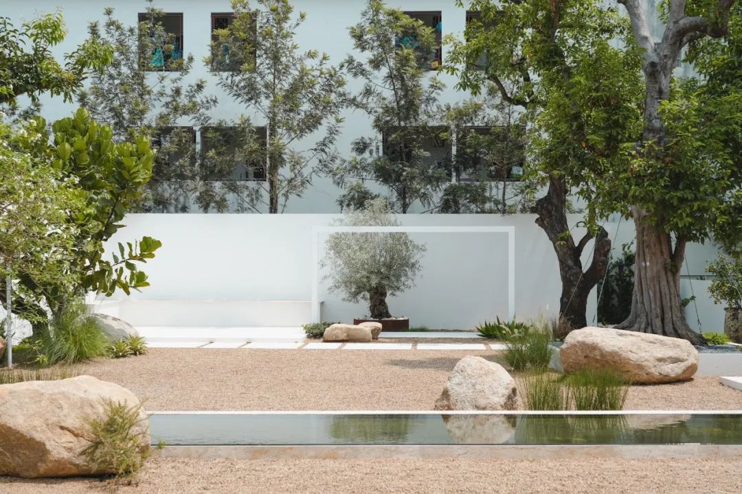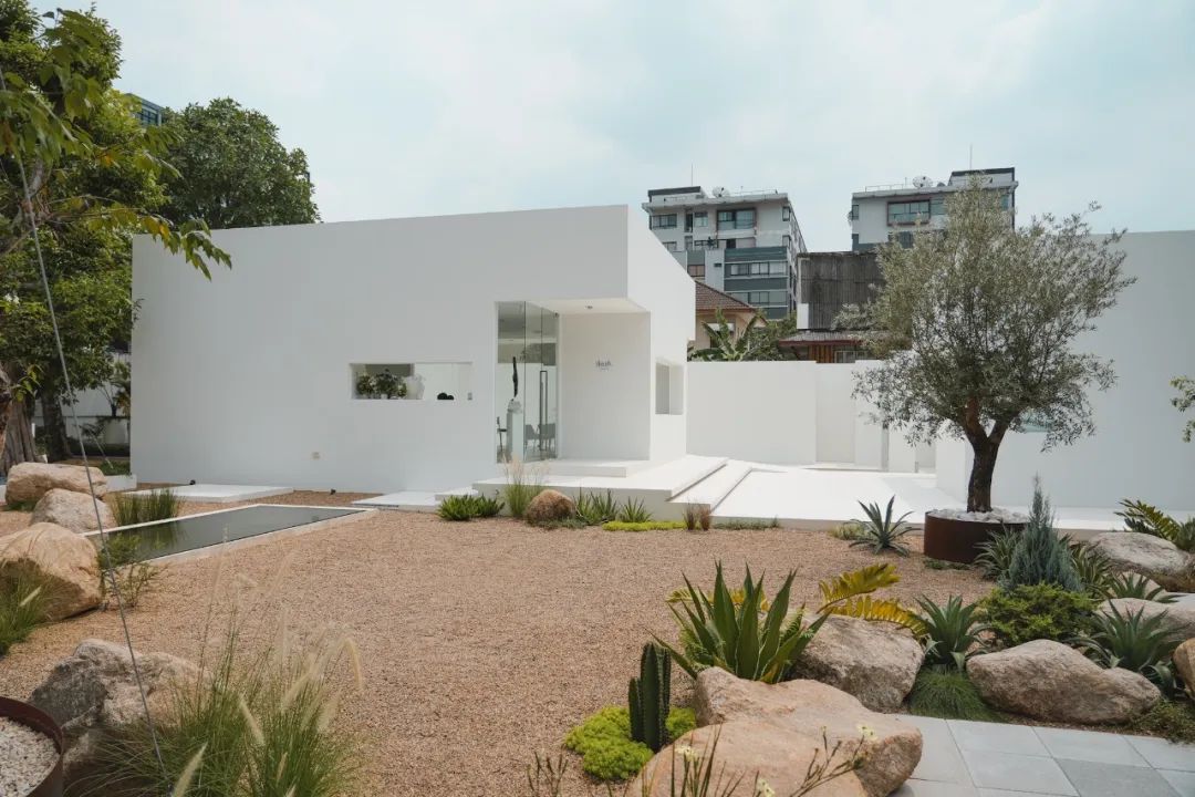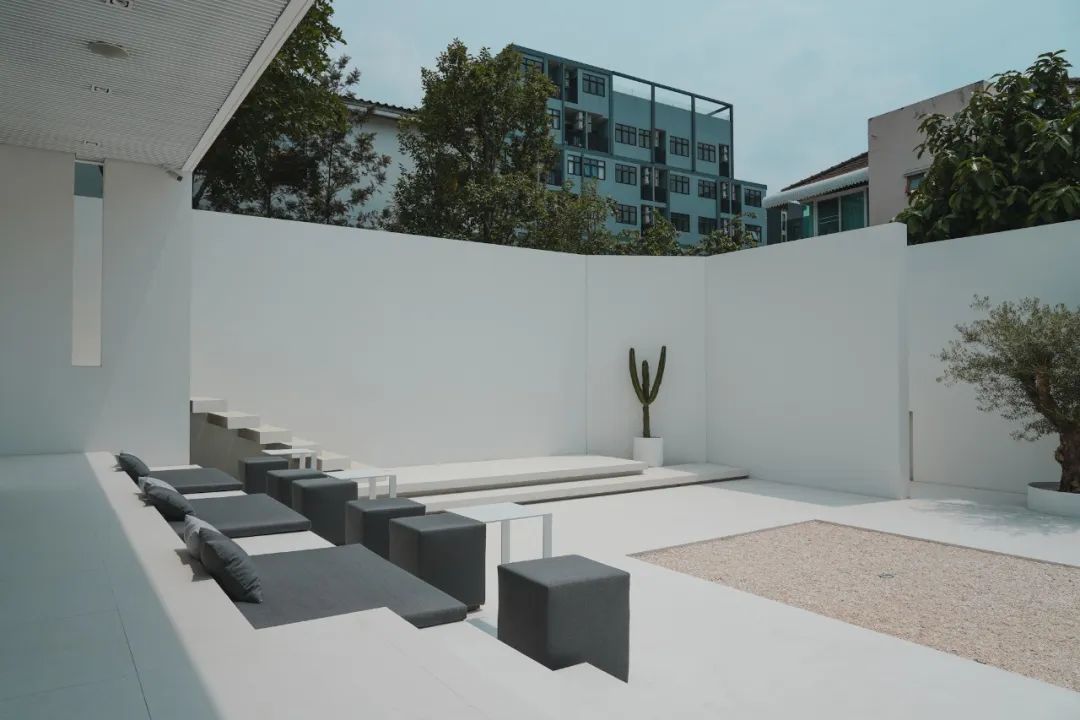 在設計方面,dash.space希望打造出熱帶極簡主義這種獨一無二的風格,通過營造泰式氛圍而脫穎而出。純白的色調,清新的熱帶植物,再配上具有熱帶特征的沙地和巖石,令人想起海灘。憑借其良好的通風性和舒適性,完美地融合了地中海和墨西哥風格。