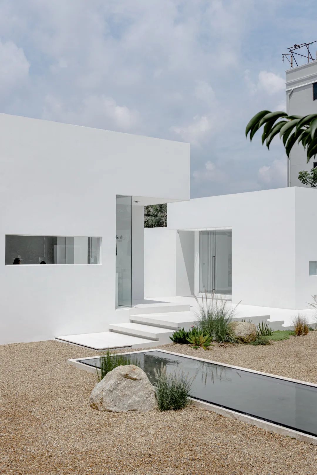 dash.space是一間位于泰國曼谷Soi Ramintra 19的咖啡館,這是一棟干凈的白色盒子建筑,舒緩的氛圍到明亮通風的環境昭示著其設計理念:即消除應付日常生活的疲憊,在城市的喧囂中打造一個純白的世外桃源。