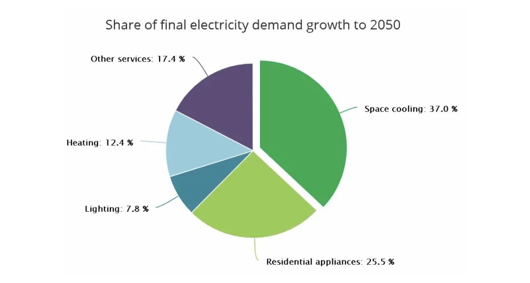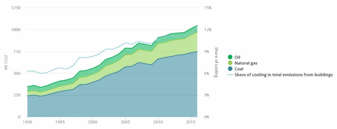 但實(shí)際上,空調(diào)在給我們帶來(lái)舒適的同時(shí)也給環(huán)境帶來(lái)了巨大的負(fù)面影響:僅2016年,它便造成了1045公噸的二氧化碳排放。?根據(jù)國(guó)際能源署的估計(jì),到2050年,制冷在全球總能源需求中的占比將攀升到37%。