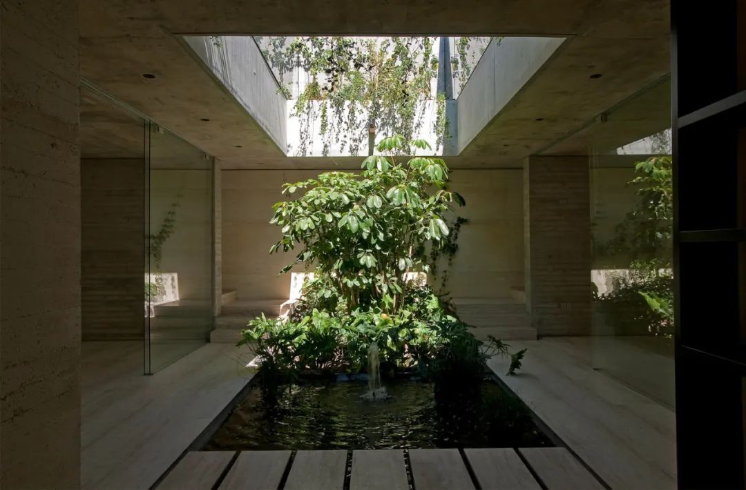 同樣地,根據(jù)氣候在建筑物中加入水可以通過(guò)蒸發(fā)和空氣流動(dòng)來(lái)冷卻住宅。羅馬人就早有使用這種方法,他們經(jīng)常在一個(gè)中央庭院水池周圍建起自己的住宅。