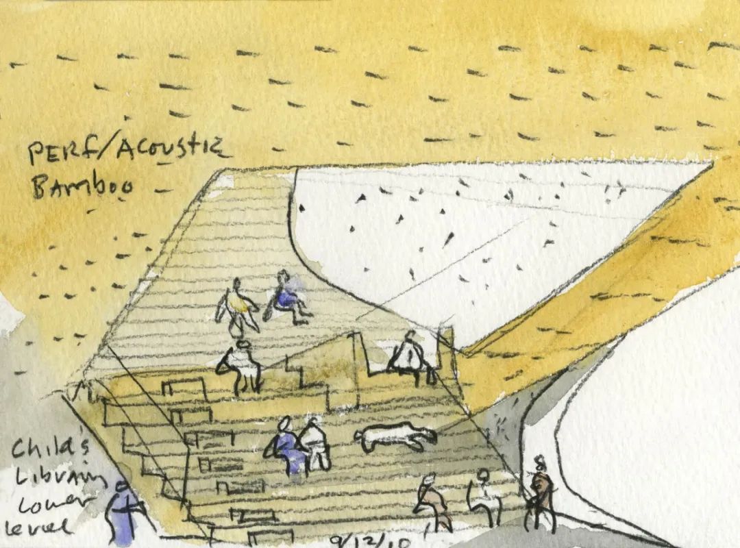 在圖書館的室內(nèi)設(shè)計(jì)上,建筑師在社交區(qū)域選擇了暖色的竹子,與室內(nèi)日光呼應(yīng),以創(chuàng)造一種邀請(qǐng)之感,使得社區(qū)的居民,無論長(zhǎng)幼,都可以快速地融入其中。