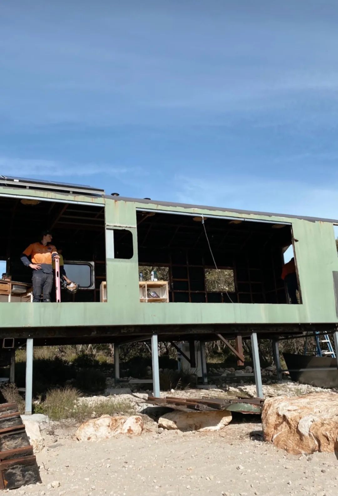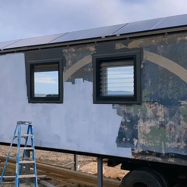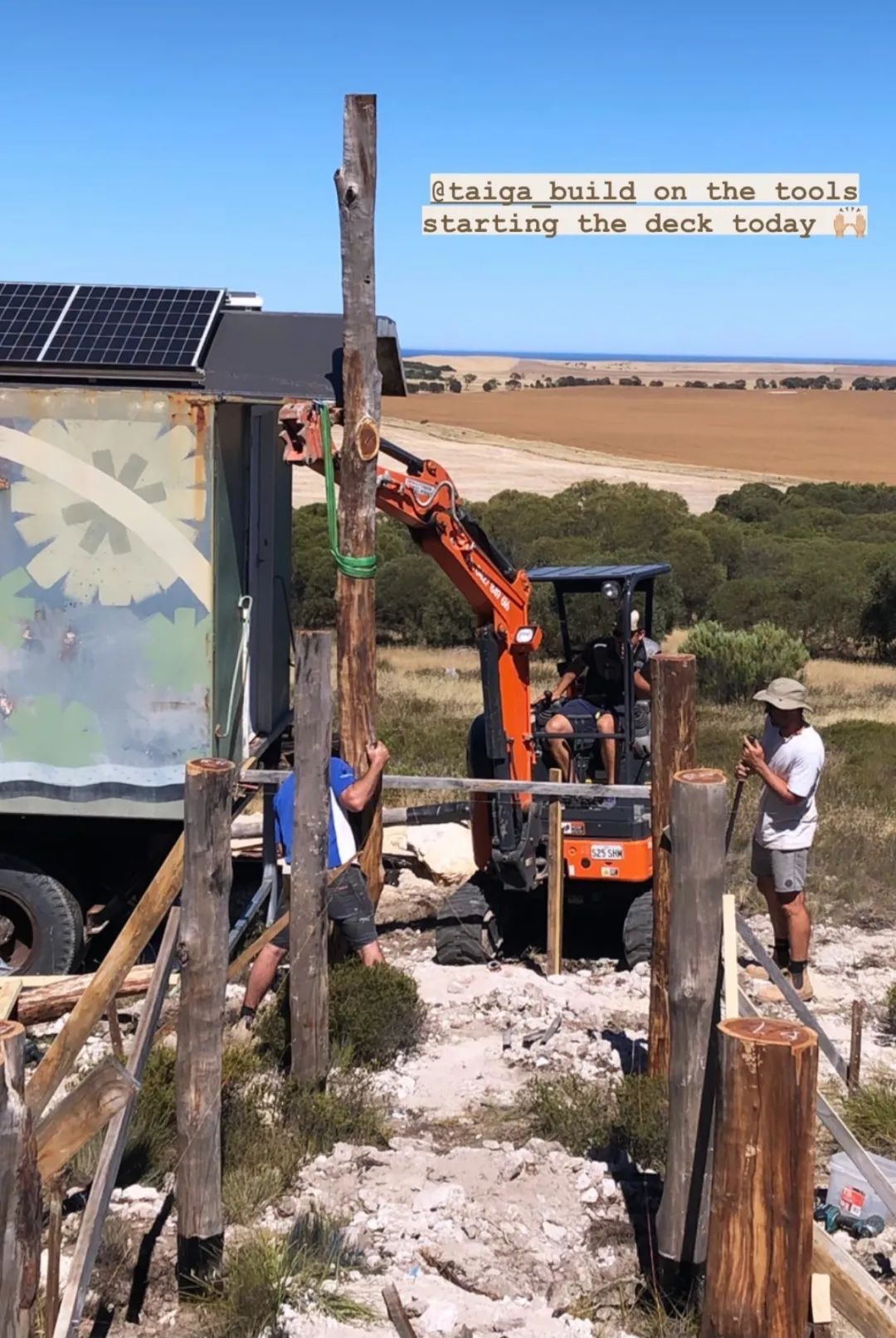 盧克和塔拉自己設(shè)計(jì),并邀請(qǐng)當(dāng)?shù)氐慕ㄖ蘐aiga Build 協(xié)助改造工程,在老車(chē)廂用大卡車(chē)運(yùn)送到基地之前,盧克已經(jīng)把放置這車(chē)廂的地臺(tái)給架設(shè)好。