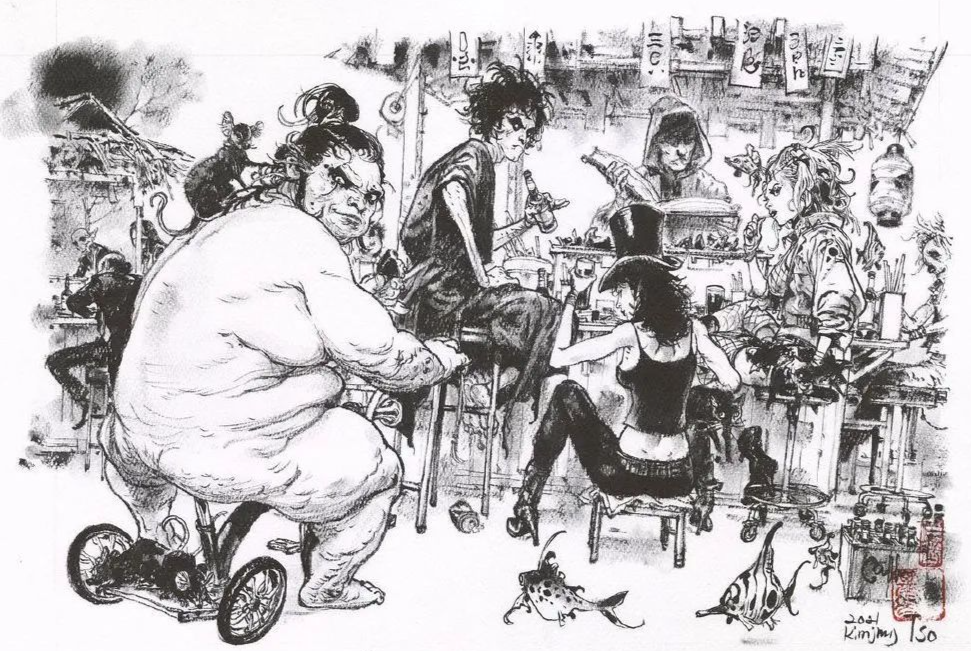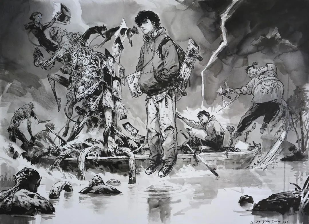 他是天才嗎?金政基本人并不同意。金政基從韓國東義大學(xué)西洋美術(shù)專業(yè)畢業(yè),大學(xué)二年級時,他因為畫功優(yōu)秀受到了《Young Jump》雜志編輯的關(guān)注和青睞,并向他約稿。2001年至2002年,金政基便開始為《Young Jump》創(chuàng)作漫畫《Pony Pony》,正式踏上了藝術(shù)創(chuàng)作之路。從業(yè)20年,他能達到如今的境界,也完全是繪畫量積累的結(jié)果。“蓋手熟爾”的賣油翁秘訣依然能用在他的身上。