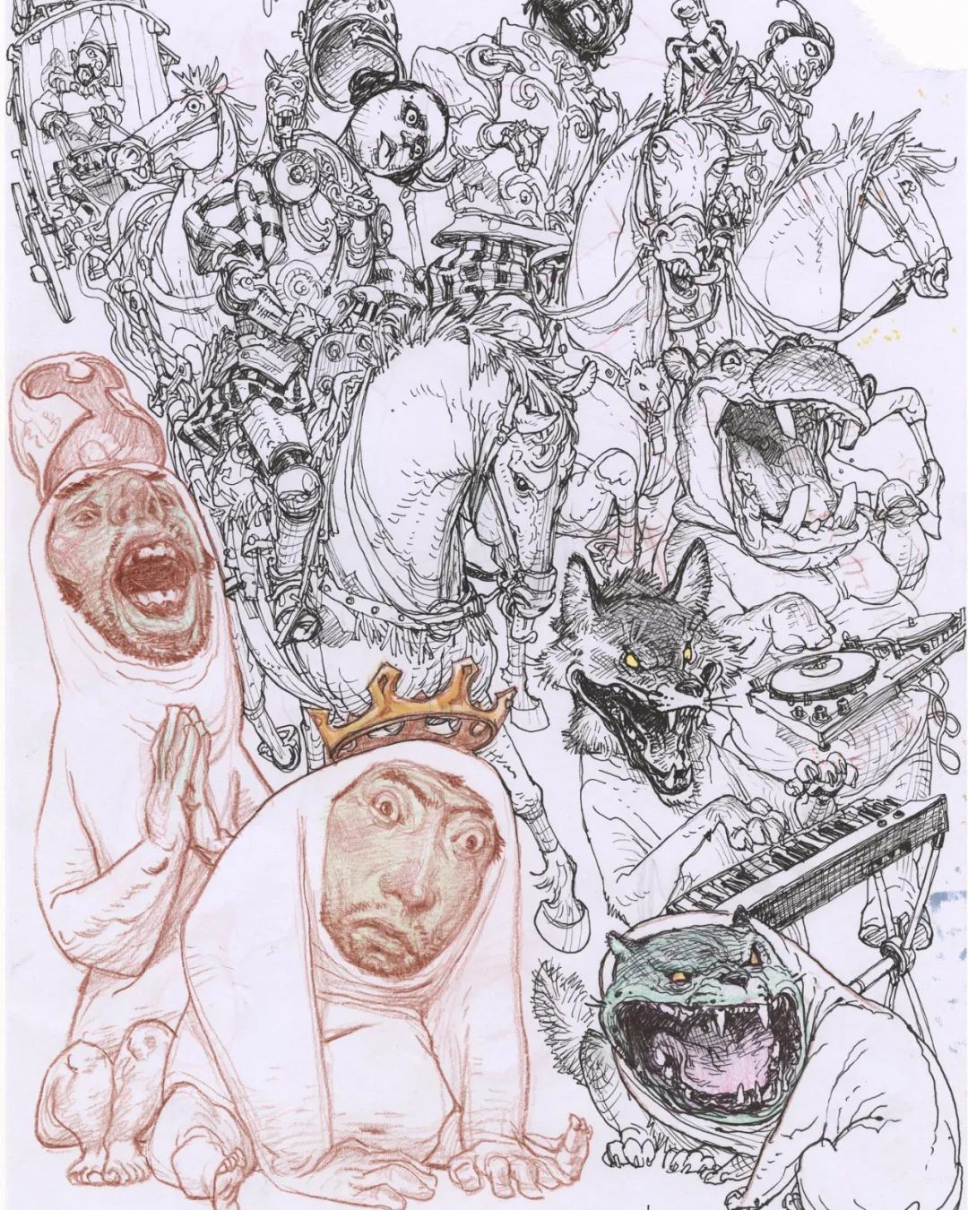 人與動物,常常與建筑物、裝甲機械融為一體。