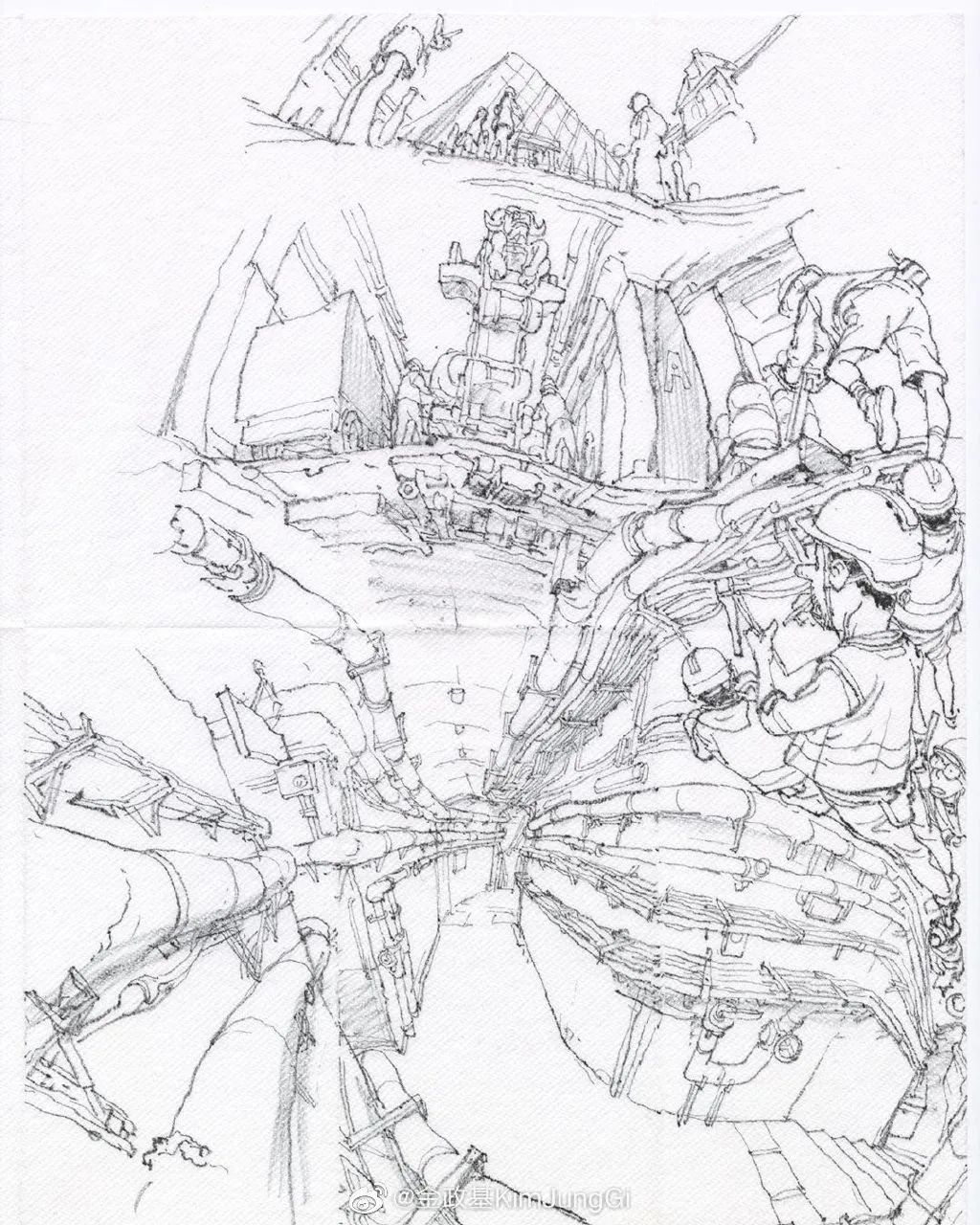 繪畫界沒有真正的天才,令人頂禮膜拜的“人肉打印機”、“行走的素材庫”金政基,不過是在不停觀察研究他所能見到的事物,大到建筑、人物,小到目鏡,不斷研究結(jié)構(gòu),最后理解它們,存到自己的腦中。