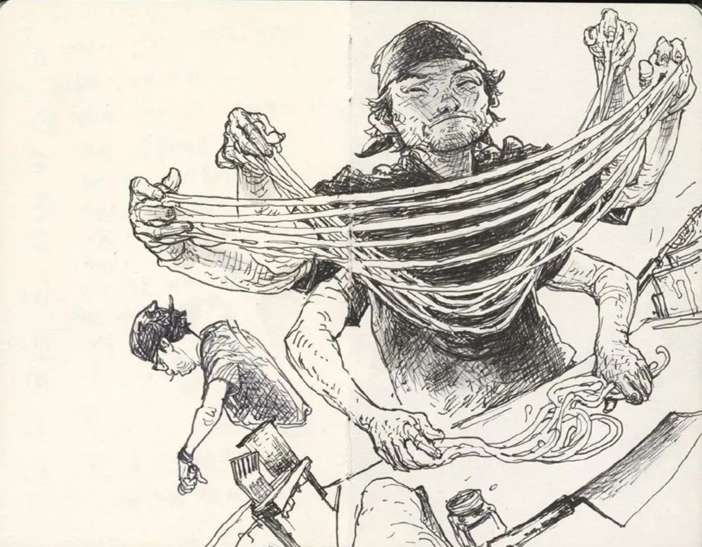 甩面的拉面師傅,其實長著六只手臂,泰拳選手有著12條腿,所向披靡。