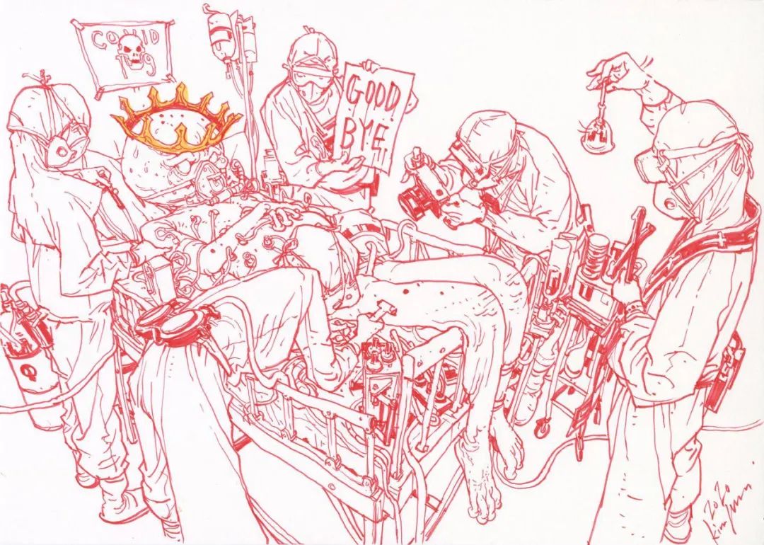 疫情期間,金政基也畫下了不少相關(guān)主題的作品,病毒被研究、分解、殺害,表達了全世界的祈愿。